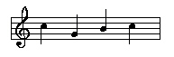 The arrange operation simply consists of taking each note of the melody and replacing it with the nearest note belonging to the chord. For example, the C of the melody does not belong to the G Major chord. Pizzicato thus found the note which is closest to C in the chord, i.e. B. The G of the melody belongs to the chord and so stay the same. It is also the case with the B note. The melody is thus arranged to correspond to the chord notes.