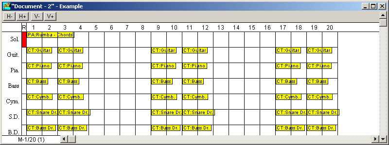 Let us take the simplest case to start. A chord progression is provided as an example for each style. By holding the Control key , double-click on the Example score. The sequencer view opens: