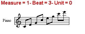 You will notice that the time position is displayed on the closest beat of the measure. If you hold down the SHIFT key, you may increase the precision to one 16th note (the unit changes : 120 = 1 x 16th note, 240 = 2 x 16th note, 360 = 3 x 16th note).